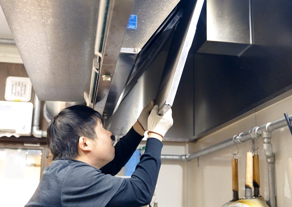 グリスフィルターの交換・洗浄・設置を通じて、
