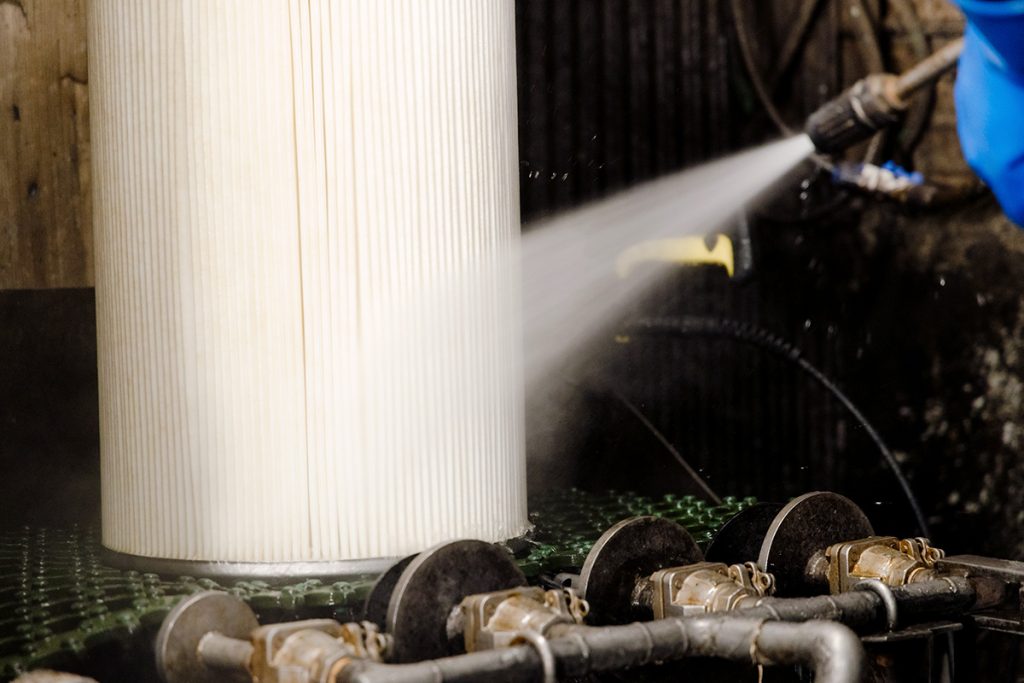 筒状の特殊フィルターの洗浄も行っています。